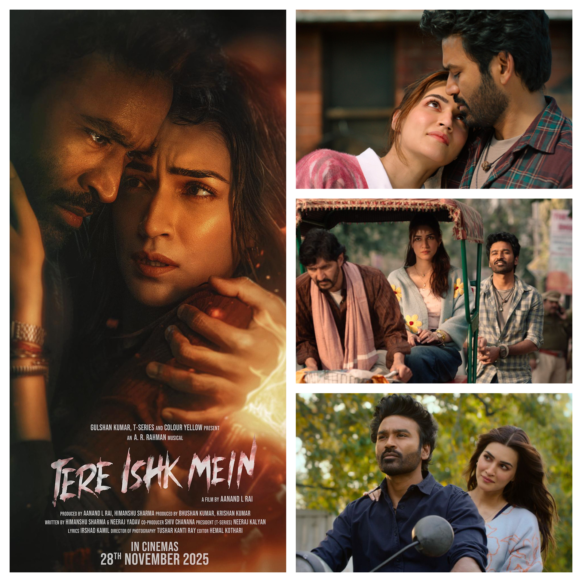 Gulshan Kumar, T-Series, and Colour Yellow present Tere Ishk Mein, produced by Aanand L Rai and Himanshu Sharma, Bhushan Kumar, and Krishan Kumar. The film, directed by Aanand L Rai and written by Himanshu Sharma and Neeraj Yadav, is an A.R. Rahman musical with lyrics by Irshad Kamil. Starring Dhanush and Kriti Sanon, the film is scheduled to release worldwide in Hindi, Tamil, and Telugu on 28th November 2025.