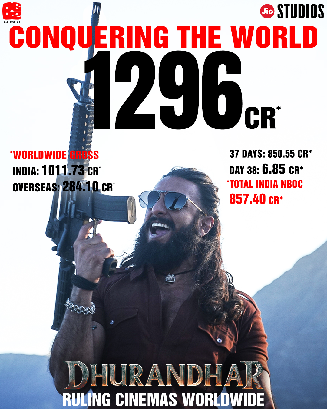 On Sunday, Day 38, the film collected ₹6.85 crore nett (India), taking its India nett total to ₹857.40 crore, an extraordinary figure driven by sustained demand and remarkable audience retention.
