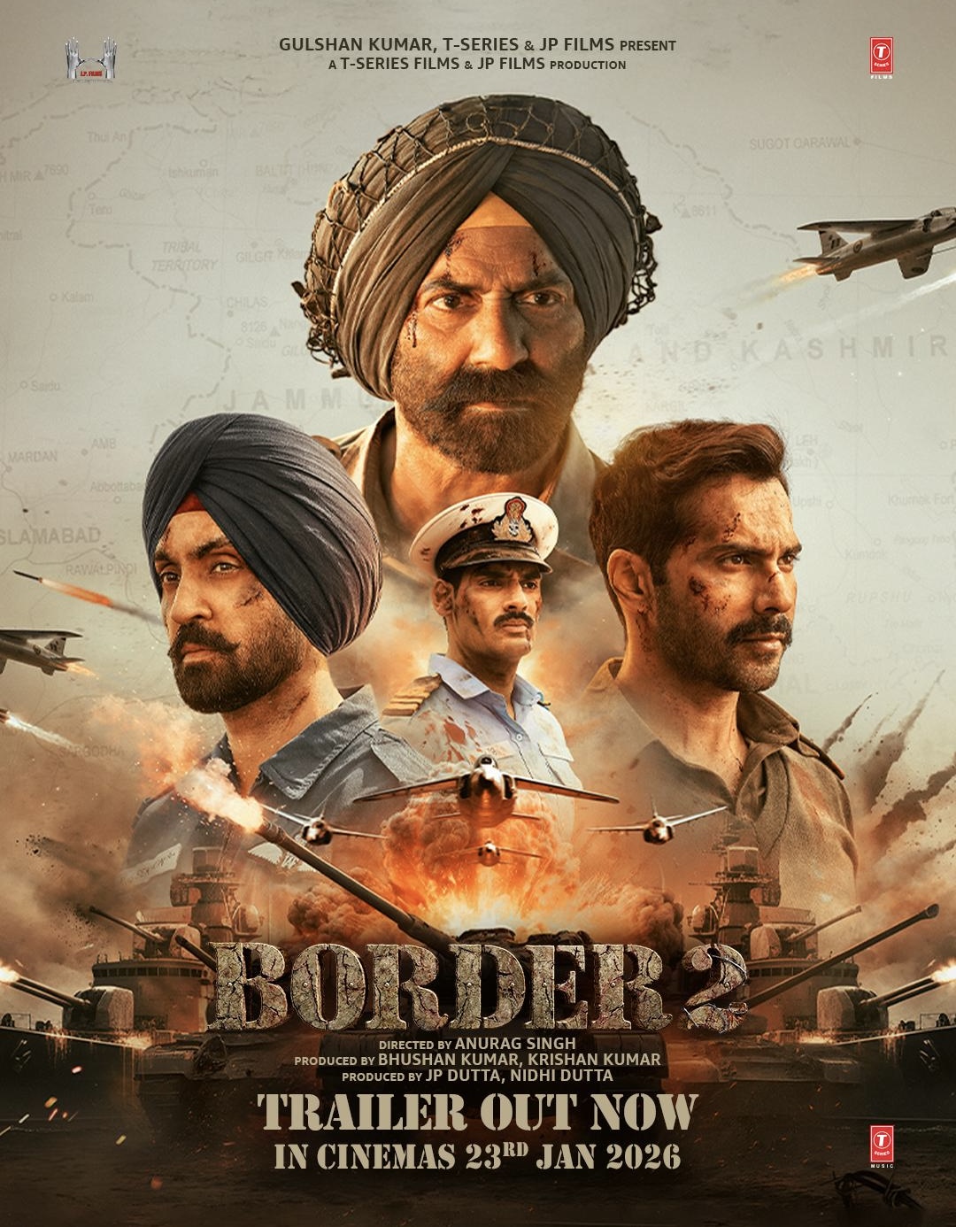 Border 2 is presented by Gulshan Kumar & T-Series, in association with J.P. Dutta’s J.P. Films. Backed by a powerful production team including Bhushan Kumar, Krishan Kumar, J.P. Dutta, and Nidhi Dutta, and directed by Anurag Singh. Gear up for this monumental saga of patriotism and courage, as Border 2 storms into cinemas on January 23rd 2026.
