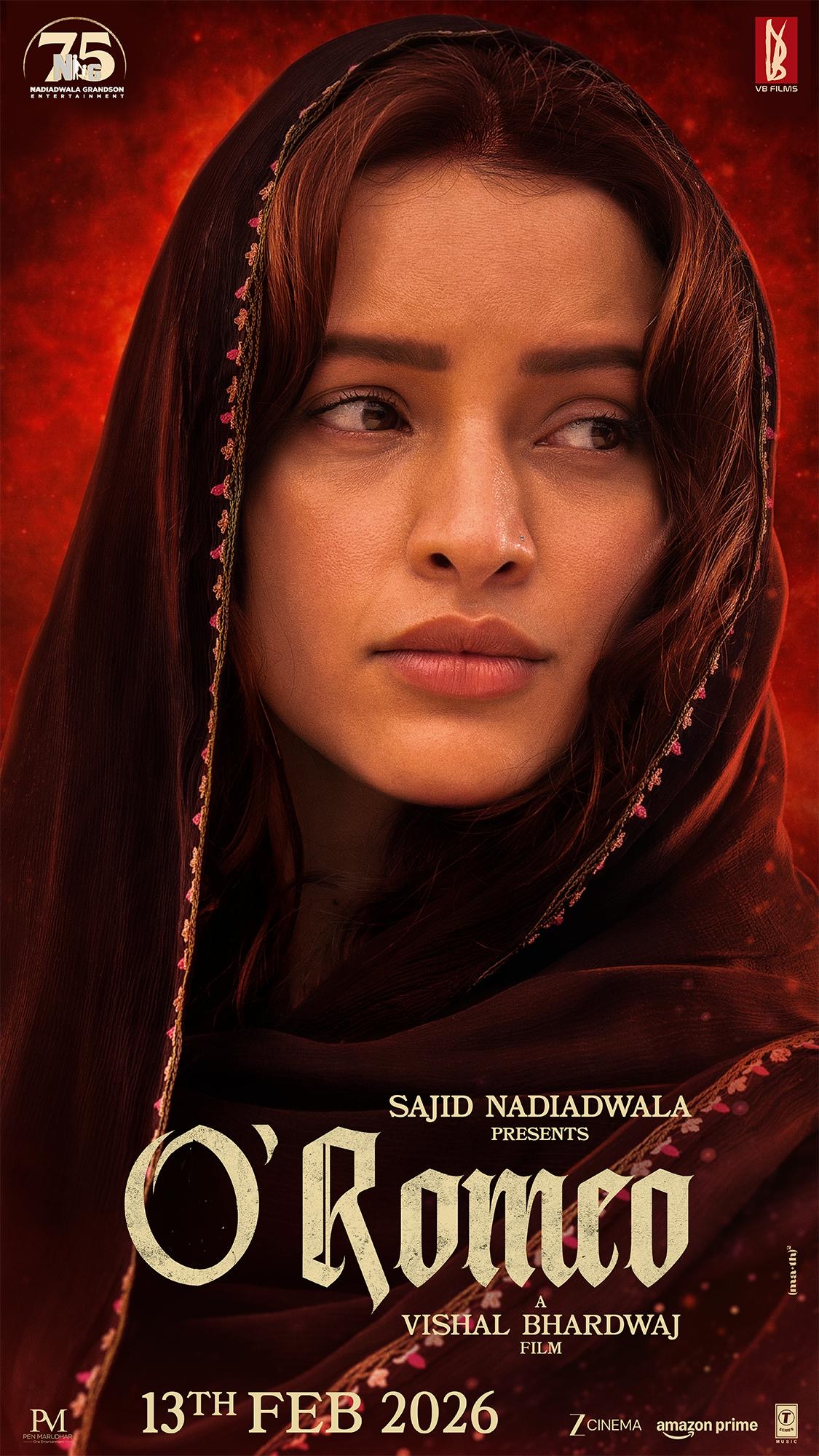 Sajid Nadiadwala presents O’Romeo, a film by Vishal Bhardwaj, produced by Nadiadwala Grandson Entertainment. Releasing theatrically on 13th February 2026 through Marudhar Entertainment and Funasia Films.