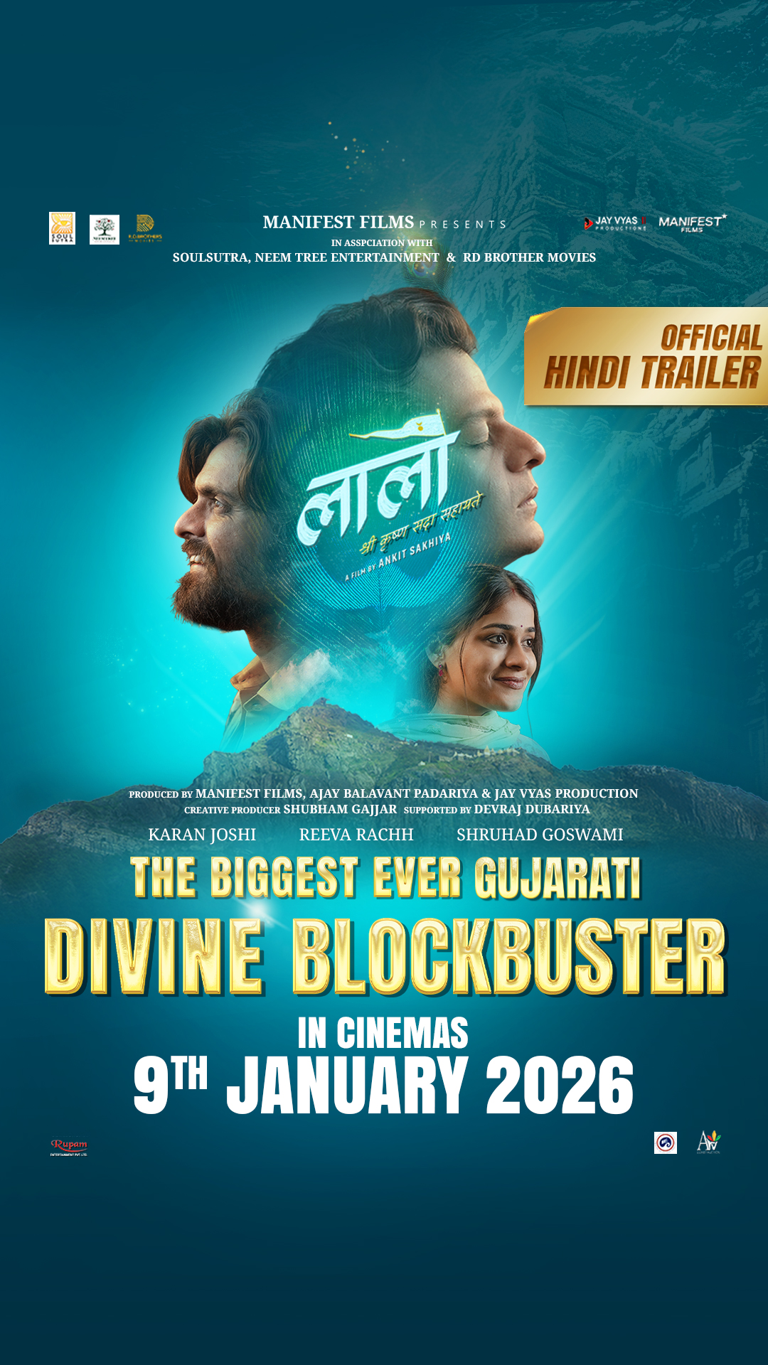 Presented by Manifest Films and produced by Ajay Padariya and Jay Vyas, the film stars Reeva Rachh, Shruhad Goswami, and Karan Joshi, and is written and directed by Ankit Sakhiya. Laalo – Krishna Sada Sahaayate releases nationwide in Hindi on 9th January, 2026.