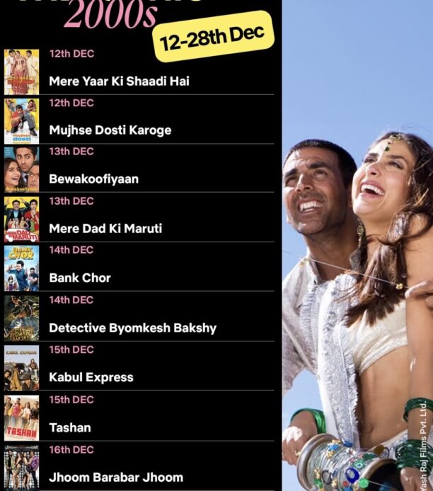Perfect for your festive mood, 34 films, including Bunty Aur Babli, Hum Tum, Thoda Pyaar Thoda Magic, Mujhse Dosti Karoge, and Ta Ra Rum Pum, will stream across the holiday season, with two films premiering daily from December 12 to 28.