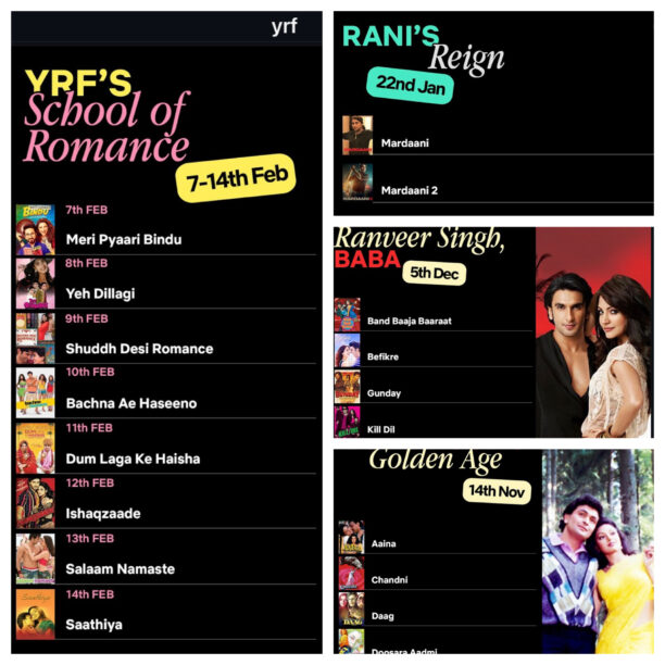 Beginning November 14, classic Yash Raj Films titles such as Chandni, Kabhi Kabhie, Vijay, Lamhe, and Silsila will be available for audiences seeking timeless cinematic experiences. Get ready to relive the magic of Ranveer Singh, with his much-loved films – Band Baaja Baaraat, Ladies vs Ricky Bahl, Kill Dil, Befikre, and Gunday releasing on December 5, celebrating a decade of unforgettable characters and baba’s blockbuster energy.