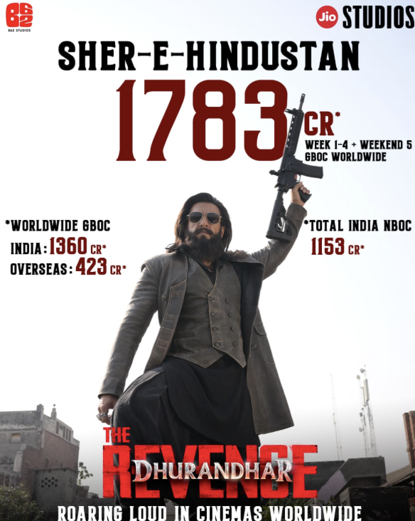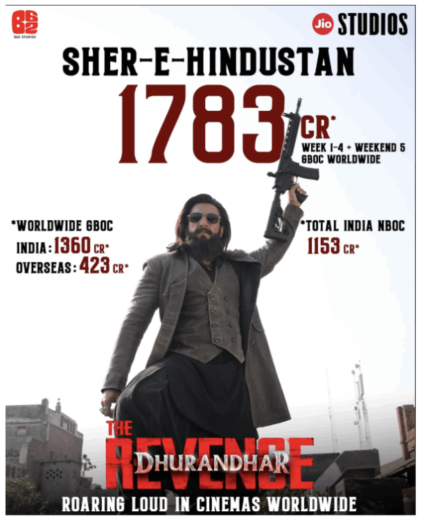 Jio Studios & B62 Studios’ Aditya Dhar directorial Dhurandhar The Revenge has continued its extraordinary box-office journey, completing over a month in cinemas with an impressive hold. The spy-action entertainer delivered solid numbers across its fifth weekend as well, collecting a total of ₹1,153 Crore nett in India & ₹1,783 Crore gross globally.