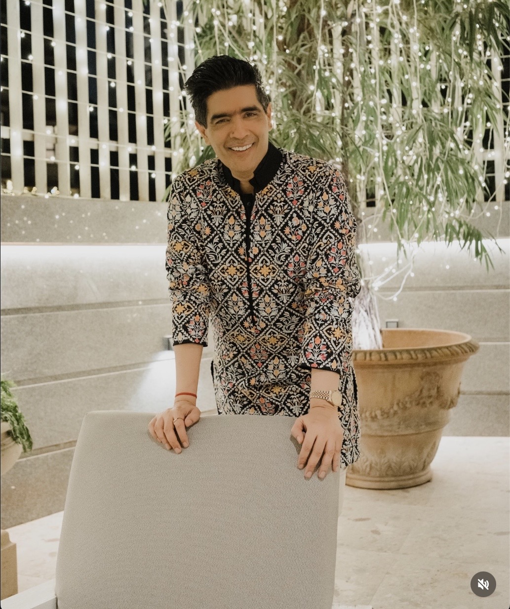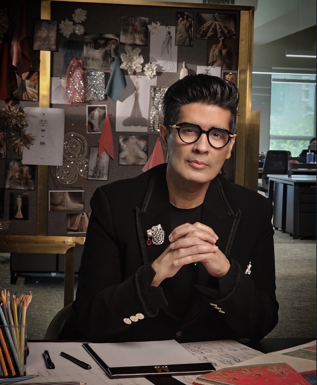 For me, I think as far as I can remember, from the age of 5 or 6, I was just born in love with cinema and clothes. I used to dance to every song. I used to cut my mother’s saree. My mother, who came from undivided India, was always conscious of English, so she gave me a tuition teacher in the first standard. And I remember during COVID when my mother told me the story that the tuition teacher told my mother , ‘Mrs. Malhotra, your son keeps commenting on my shoes and not matching my dress, but he doesn’t study.’ But still, for a mother and father to encourage my love for cinema, to allow me to go to movies in my growing years, my father had an air conditioning business, so summer holidays of two and a half months, we couldn’t travel because that was my peak season for my father. And being in Bandra, Santa Cruz, always in Mumbai, going to Gaiety Galaxy….that’s where I grew up. Movies was how I saw colour, lifestyle, songs, clothes, everything.