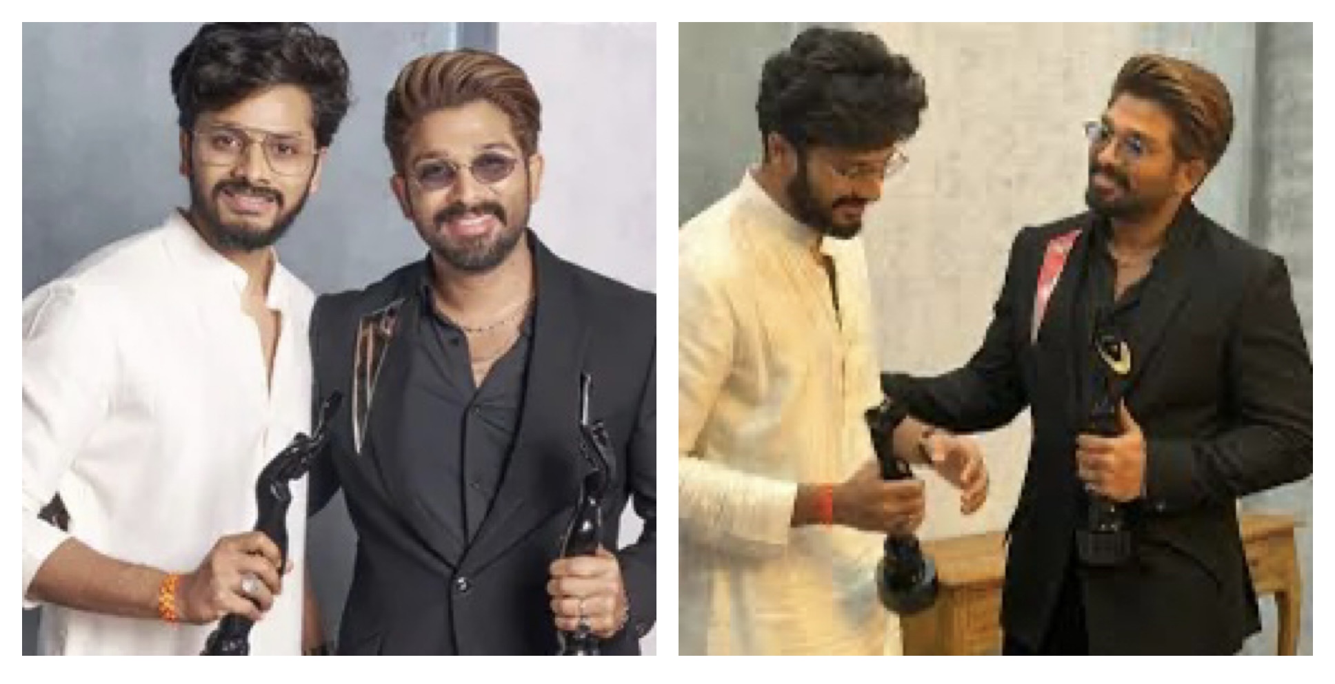It was surreal, Sir! I couldn’t believe it was happening. I’ve grown up watching the films of Chiranjeevi Sir and Allu Arjun Sir. And now, to be sharing the stage with Arjun Sir… he won the best actor for Pushpaa 2. I won the critics’ award for HanuMan. To be standing there with Arjun Sir… do you know I had played the child version of Arjun Sir in his first film as leading man Gangotri.