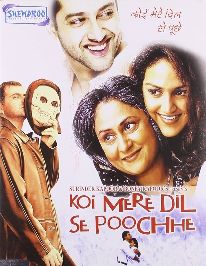Though Koi Mere Dil Se Pooche claims to be a remake of a Telugu film for some curious reason Shukla borrows the basic premise from Godmother in his second film. Koi Mere Dil Se Pooche (KMDSP) begins with Aman (Aftab Shivdasani) wooing the reclusive and diffident Esha(newcomer Esha Deol) through a maze of fetchingly photographed (by Rajen Kothari) locations and ear-pleasing song (tuned by Rajesh Roshan).